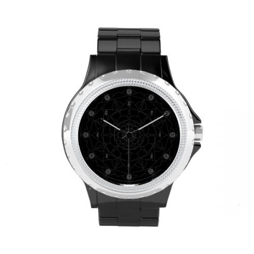 曼荼羅に十二支と守護仏チャートを組み合わせたラインストーン・ブラックエナメル腕時計です。